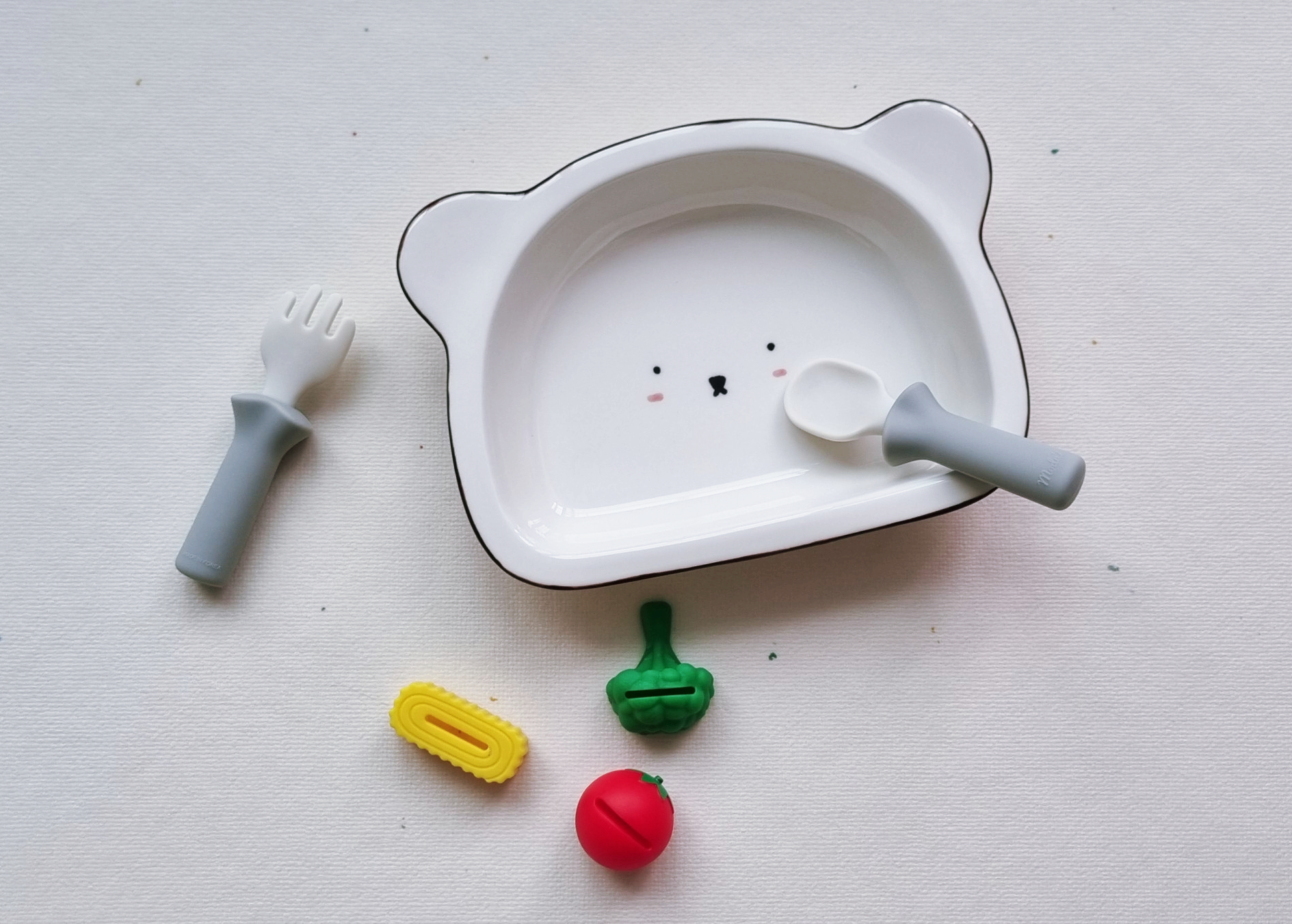 귀여운 아기곰 쉐입 디자인의 그릇. 아기용 이유식 그릇이나 유아식 그릇으로 사용하기에 너무 좋은 제품이다.